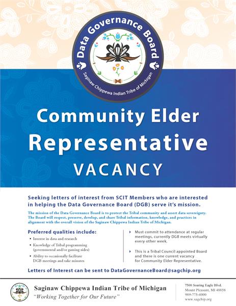 -This is a Tribal Council appointed Board and there is one current vacancy for Community Elder Representative.