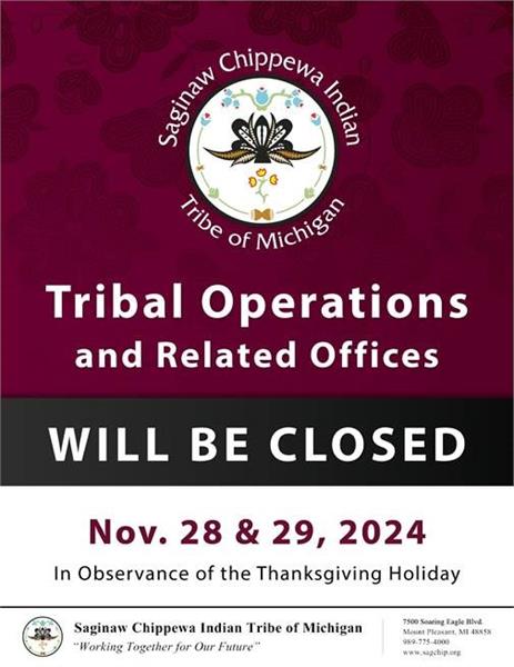 Tribal Operations Will Be Closed Nov 28th and 29th 2024