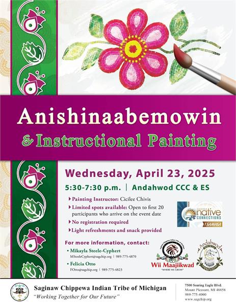 Please join the Native Connections team TONIGHT at Andahwod for a night of Anishinaabemowin and INSTRUCTIONAL painting. OPEN TO THE FIRST 20 YOUTH AND COMMUNITY MEMBERS to arrive
