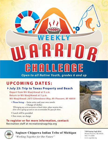 July 23: Trip to Tawas Property and Beach Depart from Wii Maajiikwad at 9 a.m.