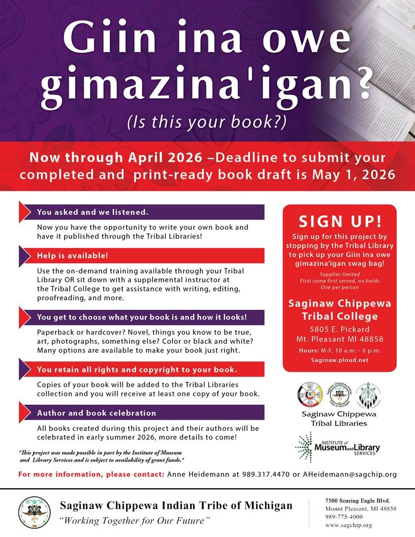You asked and we listened: now you have the opportunity to write your own book and have it published through the Tribal Libraries.