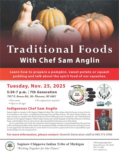 Learn how to prepare a pumpkin, sweet potato or squash pudding and talk about the spirit food of our squashes.