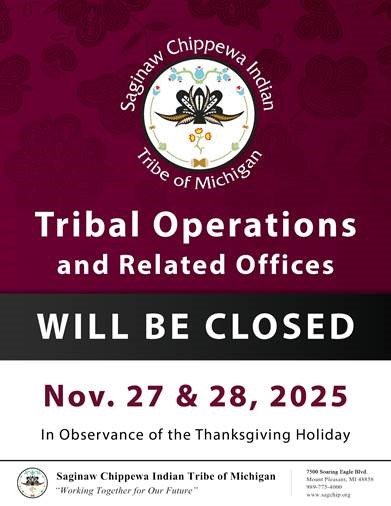 Please see holiday closure for Tribal Operations and related offices for Thursday, November 27 and Friday, November 28.