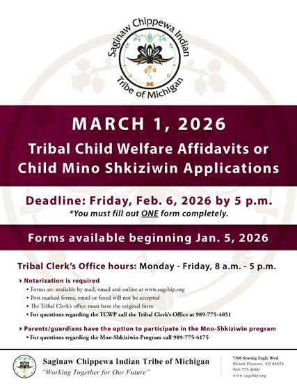 For all questions, please contact the Tribal Clerk’s office directly at 989-775-4051.