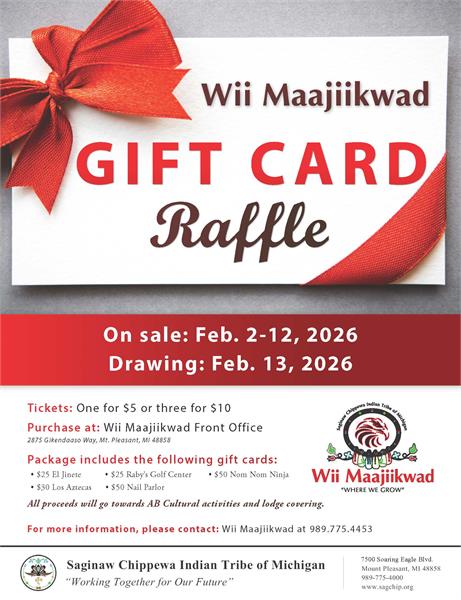 For more information, please contact: Wii Maajiikwad at 989.775.4453