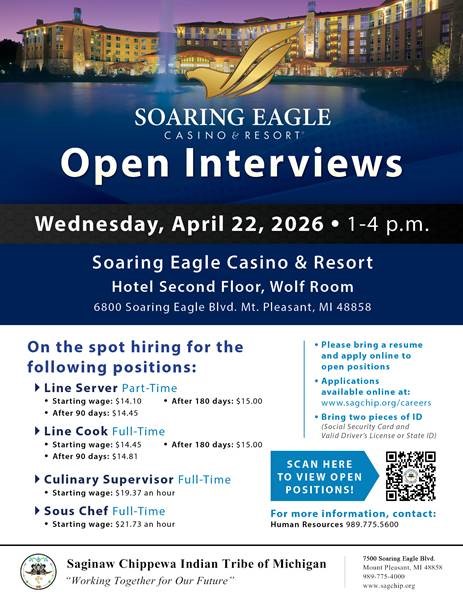 See posting for further details or contact Human Resources directly at 989-775-5600.