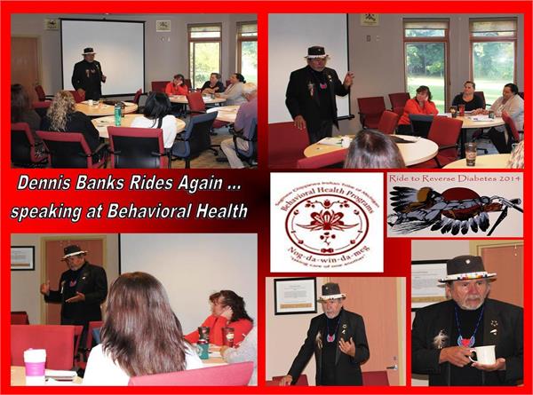Dennis Banks continues his visit to Tribal Operations with stops at Behavioral Health and Seventh Generation. Dennis is currently meeting with Nimkee staffers and will be back at Seventh Generation for a “Blessing of the Bikes” at 12:15pm as he continues his journey to Washington, D.C. Come join Dennis and the Diabetes Riders as they move forward in their efforts.