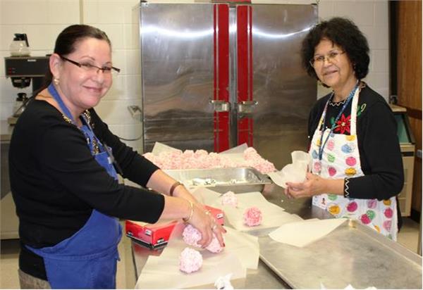 Immediately following the service, a poinsettia drawing will take place for Tribal Elders sponsored by SCIT Public Relations and goodie bags will be distributed to community youth in attendance. Tribal employees Marcella Hadden and Sonja Sowmick are getting ready for the arrival of the Saginaw Chippewa Youth Council as they get ready to assemble Christmas kisses, popcorn balls and other snacks for the Unity Service “goodie bags”. A free community lunch catered by SECR Food & Beverage and sponsored by the local area churches and SCIT Public Relations will round out the festivities.
