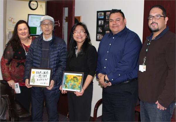 Japanese master artist Akira Takei was accompanied by Taiwan-born artist and Mt. Pleasant resident Lily Lihting Li Kostrzewa to Tribal Operations for a cultural exchange and building of international relationships and friendships. After a brief greeting by our SCIT Administrators Dustin Davis and Ruben Mosqueda, the two international artists met with Tribal Chief Steve Pego and Saginaw Chippewa Tribal Council.
