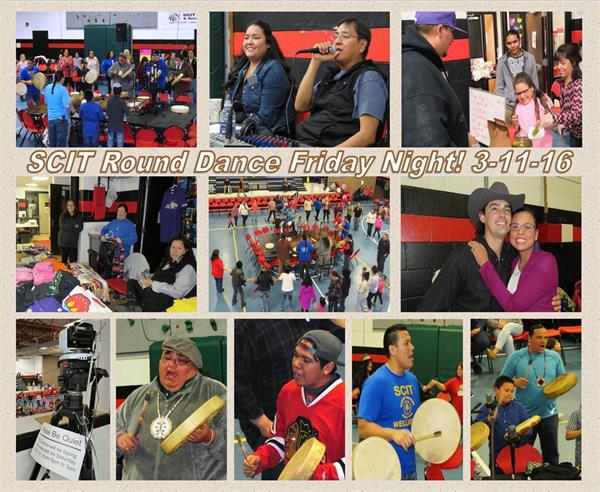 In an effort to provide bonus coverage, Team Observer is on site to report the 9th Annual SCIT Round Dance in the Eagles Nest Tribal Gym is in full swing under the Friday night lights, March 11. Drummers, dancers and vendors are flocking to the nest from all over the U. S. and Canada for one of the most special cultural and traditional events of the year. Emcee Jermaine Bell came in from the Wind River Reservation in Wyoming and is directing the action.