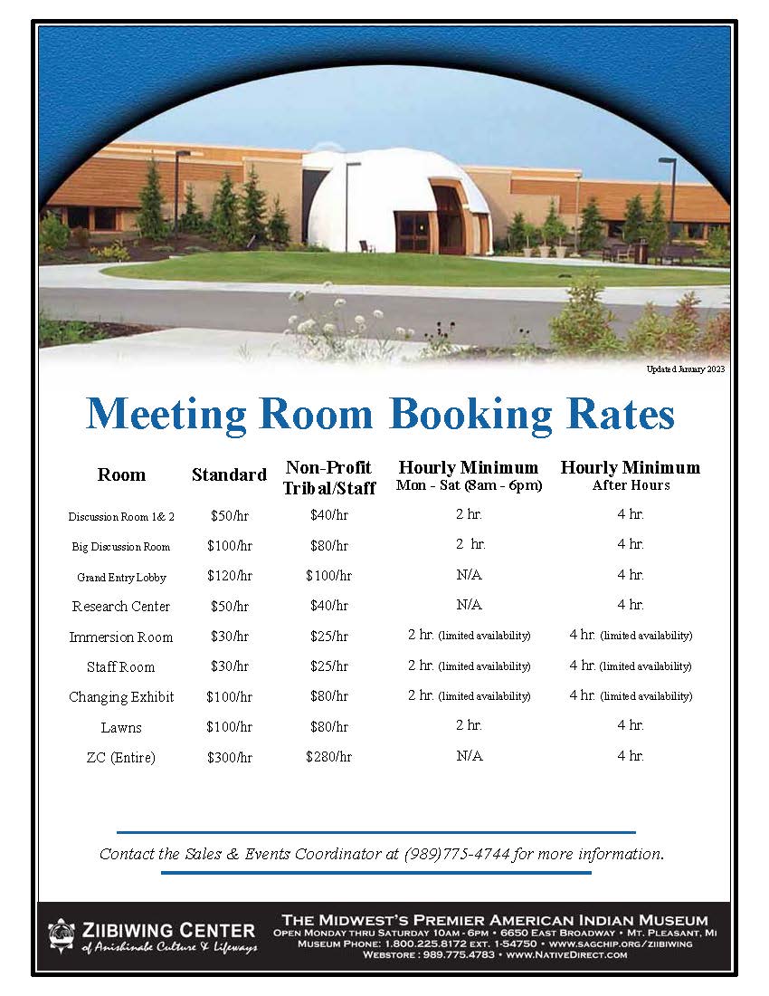 A song and dance presentation given by the Anishinabe performers is a unique option that the Ziibiwing Center offers. This onsite or offsite performance is a one-of-a-kind experience that your meeting attendees or event guests will remember for many years to come.